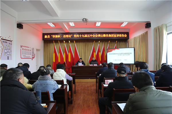 12月30日下午,黄山徽投集团举办“举旗帜·送理论”党的十九届五中全会精神专题宣讲会,会议邀请党的十九届五中全会精神县委宣讲团成员、县委党校高级讲师纪勤炜作专题辅导,集团党委书记、董事长洪筱明主持会议并讲话。集团班子成员、各权属子公司班子成员、集团各党支部班子成员、集团党支部和城投公司党支部全体党员共计50余人参加会议。