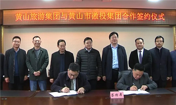 2月10日,黄山市徽投集团与黄山旅游集团合作签约仪式举行,歙县县委副书记、县长吴旭光、县委常委、副县长汪洪涛、副县长江成永、黄山旅游集团党委副书记、总裁黄世稳出席签约仪式。