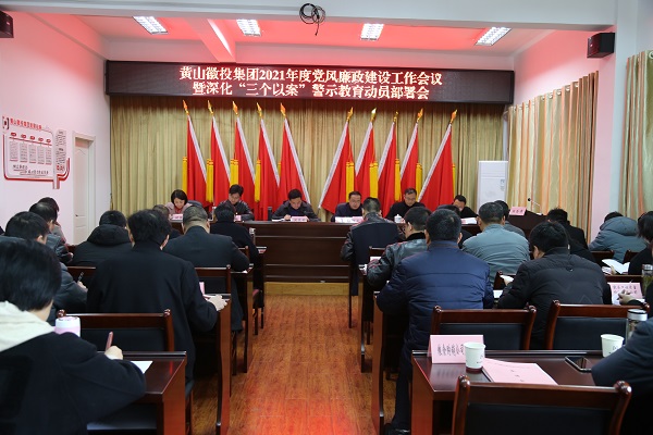 3月13日,黄山徽投集团召开2021年度党风廉政建设工作暨深化“三个以案”警示教育动员部署会,集团党委书记洪筱明主持会议并讲话,集团班子成员、集团各部门负责人、各权属子公司班子成员、集团本部全体职工参加会议。