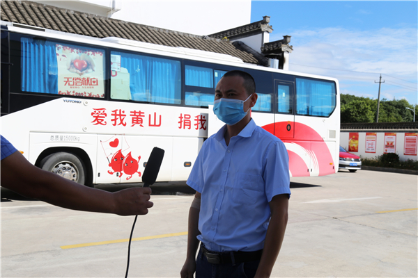 歙县城市公交公司员工胡海飞说道:“今天很高兴参加集团组织的献血活动,这是我第一次献血 ,以后我会多多参与献血活动,为国家献出一点力量 ”。